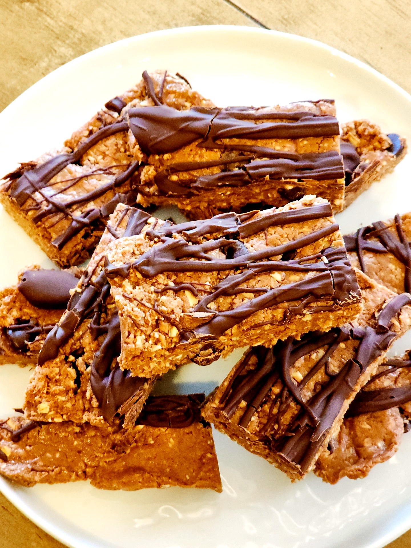 Drizzle the chocolate over the bars and place back into the fridge to set, about 30 minutes.